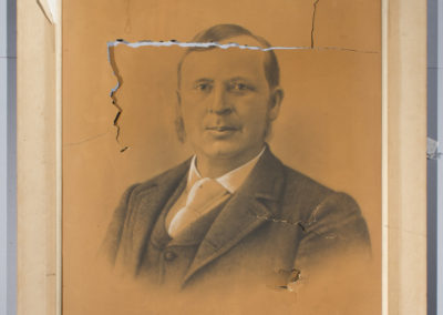 Crayon portrait after lining, inpainting, filling of losses, housing in preservation package and after treatment of original frame